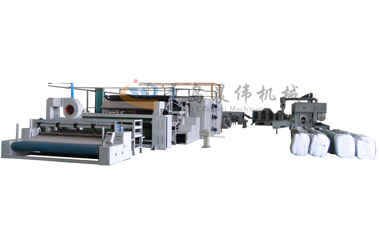 開(kāi)包機(jī)-開(kāi)松機(jī)-振動(dòng)給棉機(jī)-梳理機(jī)-鋪網(wǎng)機(jī)-烘房-燙光機(jī)-成卷切片機(jī)