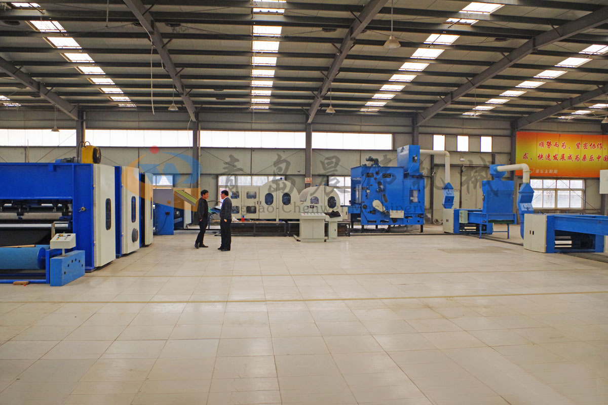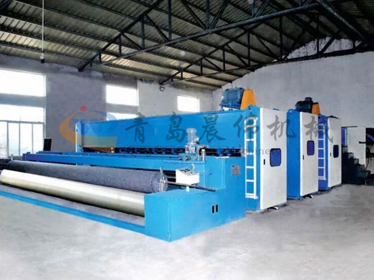 開包機(jī)-開松機(jī)-振動給棉機(jī)-梳理機(jī)-鋪網(wǎng)機(jī)-針刺機(jī)-切邊成卷機(jī)