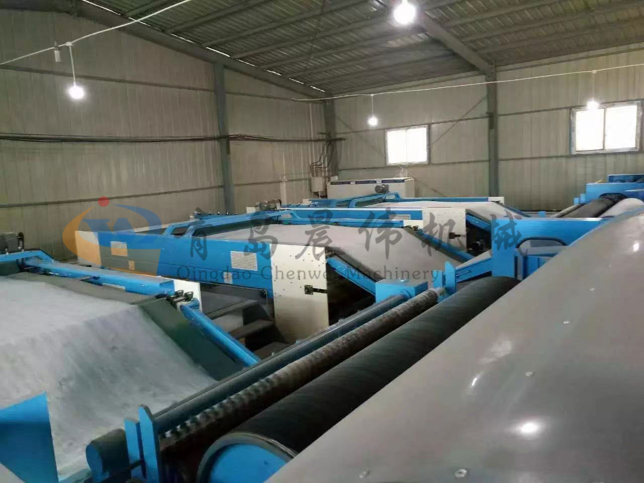該生產(chǎn)線用于生產(chǎn)高檔家用紡織材料仿絲棉, 仿絲棉廣泛應(yīng)用于服裝、床上用品、家具等。根據(jù)客戶要求可分四機(jī)頭、六機(jī)頭、七機(jī)頭等。機(jī)頭越多,產(chǎn)量越高。