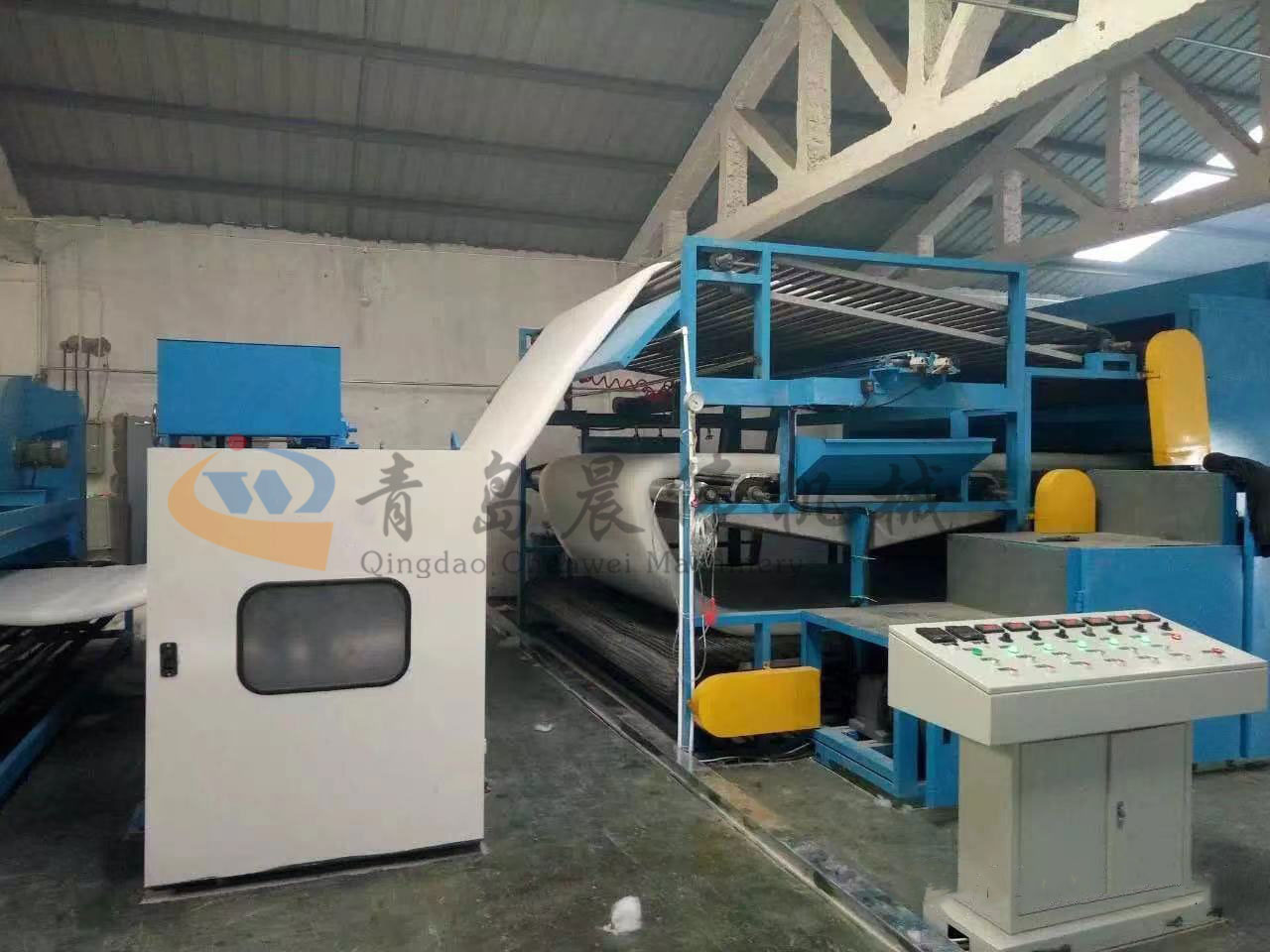 5. CWPW-鋪網(wǎng)機(jī):用于將梳理纖網(wǎng)通過移動(dòng)小車交叉折疊為所需幅寬和定量的多層纖網(wǎng),以供后道工序使用。鋪網(wǎng)輥采用特殊結(jié)構(gòu),加裝壓網(wǎng)輥和導(dǎo)流板,不飄網(wǎng)不起皺,五只大功率電機(jī)精確控制各部件的運(yùn)動(dòng),電動(dòng)輸出簾高度調(diào)節(jié)裝置