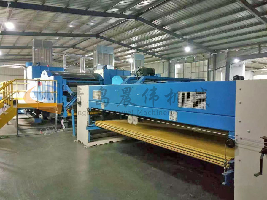 5. CWPW-鋪網(wǎng)機(jī):用于將梳理纖網(wǎng)通過(guò)移動(dòng)小車交叉折疊為所需幅寬和定量的多層纖網(wǎng),以供后道工序使用。鋪網(wǎng)輥采用特殊結(jié)構(gòu),加裝壓網(wǎng)輥和導(dǎo)流板,不飄網(wǎng)不起皺,五只大功率電機(jī)精確控制各部件的運(yùn)動(dòng),電動(dòng)輸出簾高度調(diào)節(jié)裝置