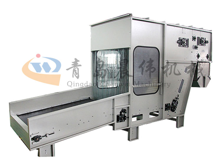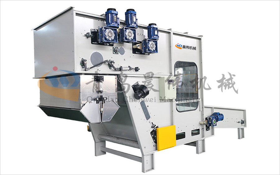 將各種等級整包或半包料進(jìn)行初步打開,無需人工抖棉,降低勞動(dòng)強(qiáng)度,通過稱重系統(tǒng)PLC計(jì)算進(jìn)行準(zhǔn)確配比,均勻平鋪到長簾上。