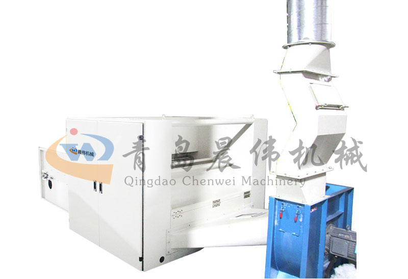 各種不同纖維被放入水平輸送簾,經(jīng)壓棉輥和對輥羅拉喂入,經(jīng)輸棉風(fēng)機(jī)以適量的風(fēng)量輸送纖維原料供后道工作使用;并配備橋式除鐵裝備。